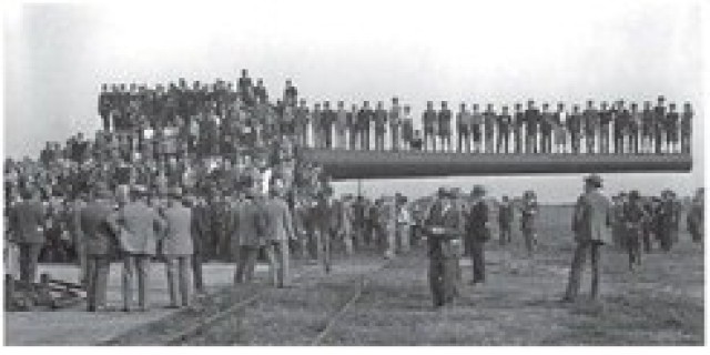 U.S. Army Soldiers stand with the “The Big Gun” in the early 1920s. Originally intended for use on battleships and then coastal defense at seaports between 1920-1946, this gun was built on APG in 1922 for testing purposes. (U.S. Army photo)