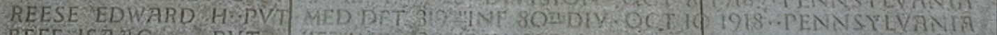 Private Reese is memorialized on the Tablets of the Missing at the Meuse-Argonne American Cemetery in Romagne-sous-Montfaucon, France. There is no definitive evidence to confirm whether he was ever recovered and buried among the unknowns. Those who served alongside him spoke highly of him, writing: “He was well-liked by every man with whom he came in contact, and all the officers, both medical and company, are full of praise for him. I am proud to have known him and associated with him in his duty, for he was a man.” In his honor, a cenotaph was placed in Laurel Hill Cemetery in Philadelphia.