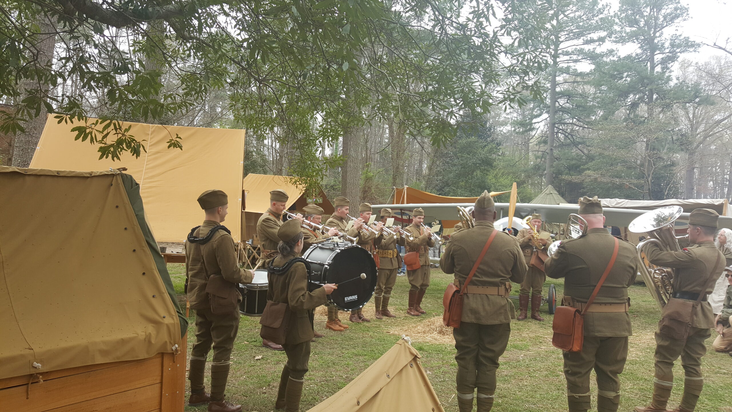 The AEF Headquarters Band’s repertoire includes iconic period pieces such as John Philip Sousa’s marches, “Over There,” “Pack Up Your Troubles In Your Old Kit Bag,” “Keep the Home Fires Burning,” “K-K-K-Katy,” “Alexander’s Ragtime Band,” and “It’s a Long Way to Tipperary.” The band also performs works by notable composers like Irving Berlin, George M. Cohan, Percy Grainger, and Kenneth Alford, as well as music by African American composers James Reese Europe, W.C. Handy, Noble Sissle, and Eubie Blake.