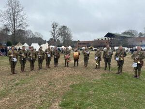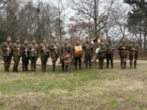 As part of the Doughboy Foundation’s educational outreach, the AEF Headquarters Band has been re-established to honor and recreate the music of the World War I era. The band meticulously performs music that would have been heard at the AEF Headquarters in Chaumont, France, between 1918 and 1919. The musicians wear reproductions of the doughboy uniforms, complete with the AEF HQ insignia on their left shoulders, to authentically represent the soldiers of that time.