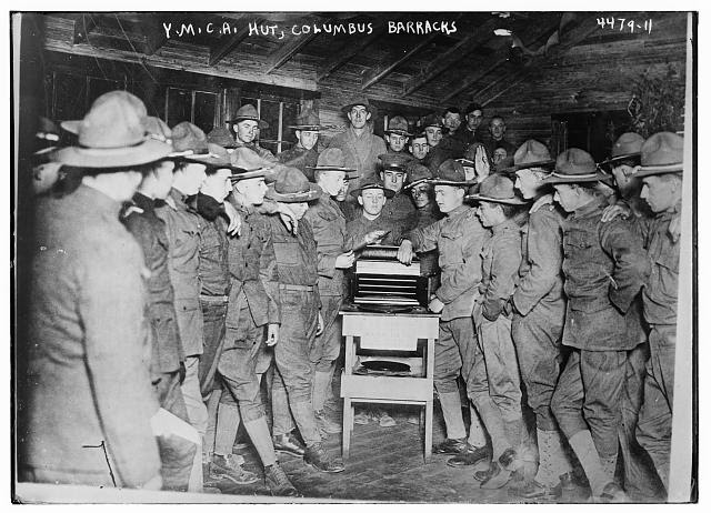 As the Great War raged in Europe, American men, women, and youth galvanized their patriotic spirit into practical action for the war effort in their local communities. One organization, the Four Minute Men, urged volunteer orators to make appeals for various causes, such as the Red Cross. They were organized three months after the U.S. entered WWI in 1917 and their name comes from the four minutes it took to change the film reels in movie houses, the primary platform for the speakers. Locations quickly grew to anywhere a crowd might be gathered: church socials, school auditoriums, city parks, boardwalks, and railroad stations. Its members were vital in disseminating the government’s war messages and information; by the time the organization was dissolved, over 75,000 citizens had participated in the program.