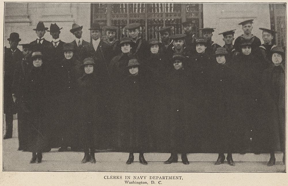 Clerks at the Navy Department, Washington, D.C. during WWI. (From “Kelly Miller’s Authentic History of the Negro and the World War”)