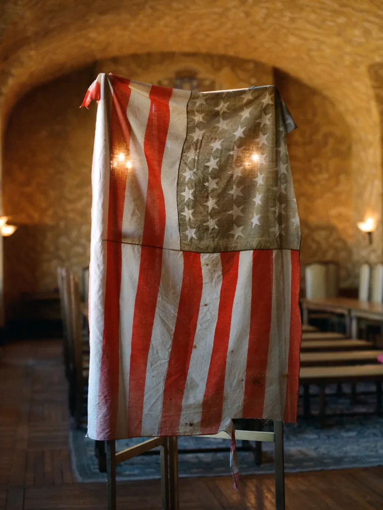 And in an otherwise unremarkable back room, grenades and shell casings found in the fields, along with a faded flag with 48 stars, thought left behind as the unit marched east to fight more.
