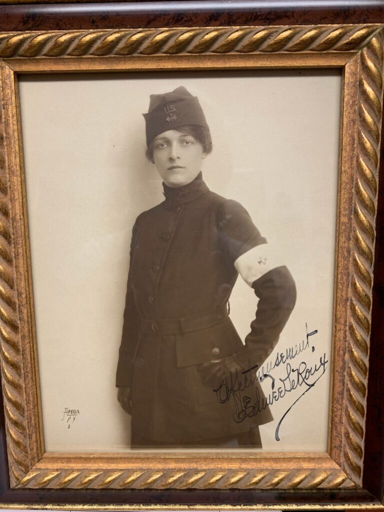 One of these women was my great-grandmother, Marie Edmee LeRoux. Edmee served as a “Hello Girl” in the U.S. Army Signal Corps, American Expeditionary Forces, during World War I. These women were deployed to 75 locations, including battlefronts in France during WWI, under General Pershing’s command. The “Hello Girls” were telephone operators who connected calls and translated between French and English in under 10 seconds per call. We credit these women with hastening the end of WWI and facilitating the speedy exchange of information between our allies and troops. They continued to handle all the calls during the Peace talks, and others served as personal translators for diplomats, and others were part of the occupational forces in Coblenz, Germany.