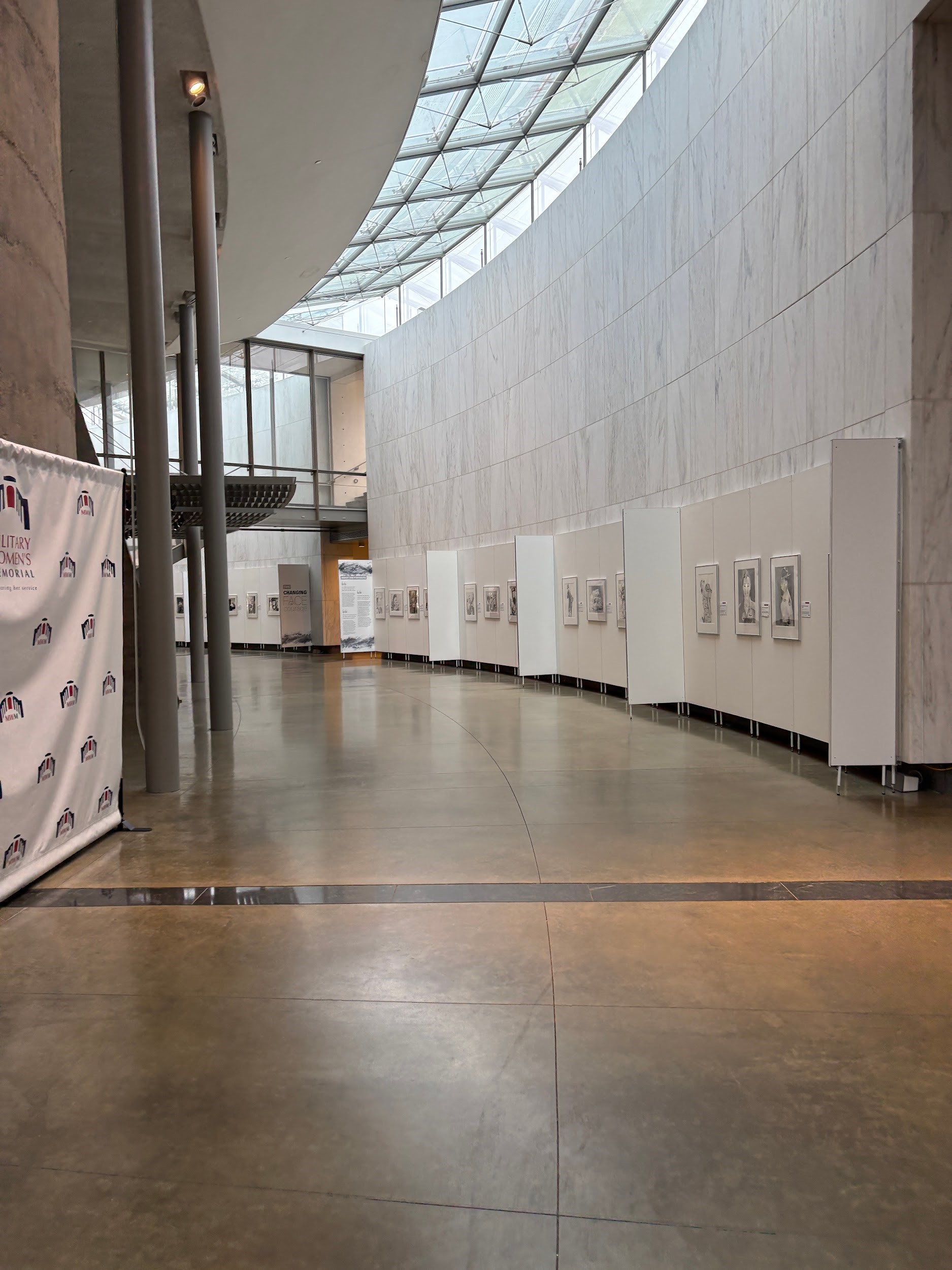 Located within Arlington National Cemetery, the Military Women’s Memorial (MWN) sits behind the ceremonial entrance. In 1986, President Ronald Reagan signed legislation establishing the Military Women’s Memorial, which was later opened and dedicated on October 18, 1997. The interior is a semicircle lined with watercolor paintings of women in the military from every generation. The other side showcases women’s history by each war era. The gorgeous glass ceiling features quotes by famous historic women, along with a rooftop terrace. It was fascinating to walk from one side of the exhibit hall to the other, seeing the leaps and bounds we have made as a society, all thanks to the hard work and perseverance of each woman veteran.