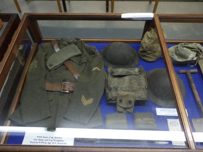 WW1 Tunic, Cap, Helmet, Gas Mask and Leg Wrappings worn by Sgt. W.N Reynolds.