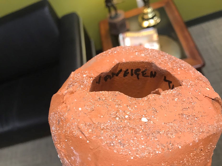 Once it was time for us to take our leave, we were gifted a few items that are currently on display at my home office (below).