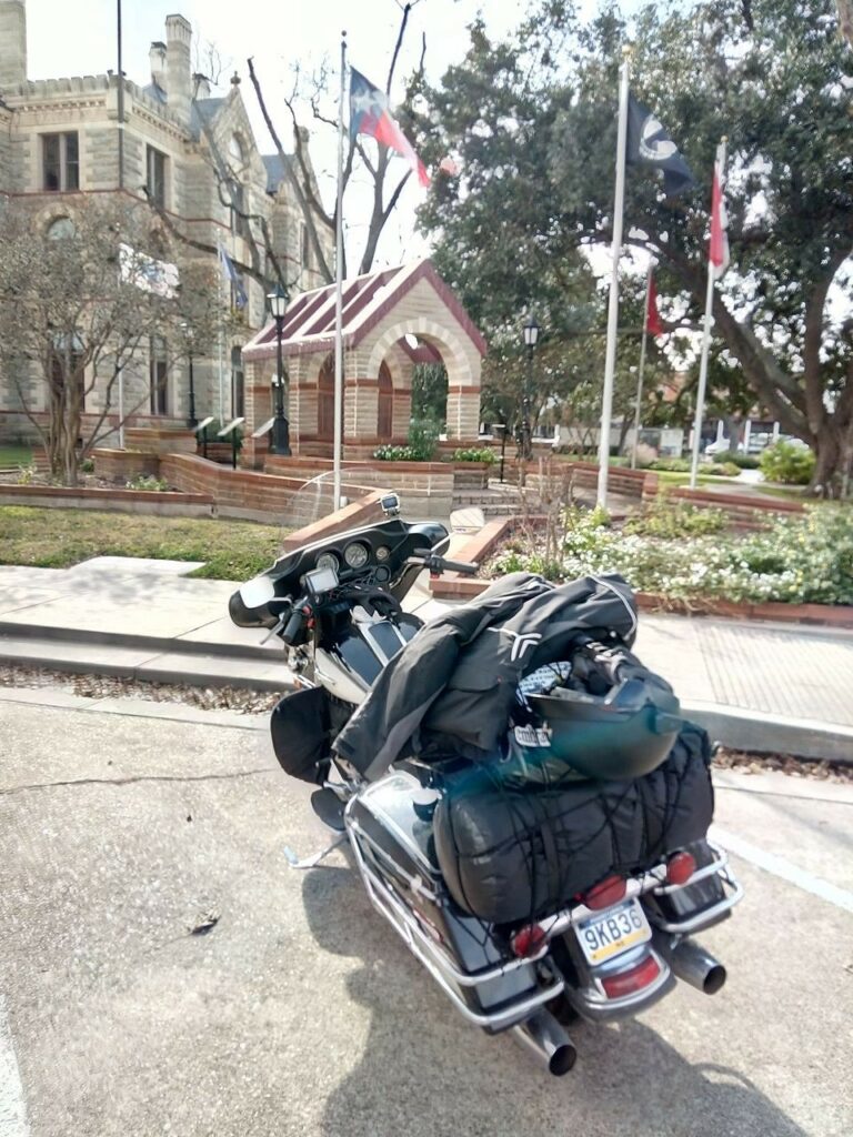 My plan for this third ride was to drive along the Mexican border, making my way from Houston, TX to Tucson, AZ. Once I would’ve made it to Tucson, AZ, I’d make a quick stop in Pittsburgh, PA to pick up my daughter for us to then fly back to Belgium to celebrate the holidays. When I was making the final preparations to leave Houston, TX however, I was messaged by the director of the Texas Military Forces Museum in Austin, TX; Mr. Jeff Hunt. Mr. Hunt invited me to a Christmas party at the museum and I made the decision to stay in the Houston, TX area during this third trip and would continue with my original plan another time. With this, my new itinerary became Houston – Galveston – Austin (Texas Military Forces Museum) – Houston.