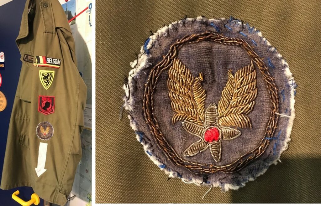 Note the embroidered Royal Flying Corps wings on the right and the embroidered U.S. Service wings on the left. On the jacket I wear on my trip, I have an Air Force badge sewn on, I believe that this is the same type as the one on the right sleeve of the jacket of 1st. Sergeant Mason. The badge is over 100 years old. This would have been made with gold wire, in the beginning of the U.S. air force in Italy on behalf of a U.S. aviator. While this badge should probably be in a museum, I believe it couldn’t be better than on the sleeve of my jacket. The same jacket I wear on my motorcycle during this trip throughout the U.S. during which I honor the WWI soldiers and their sacrifices.
