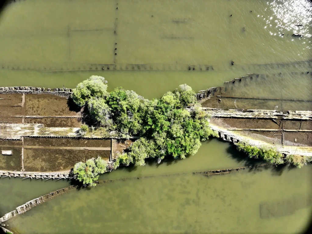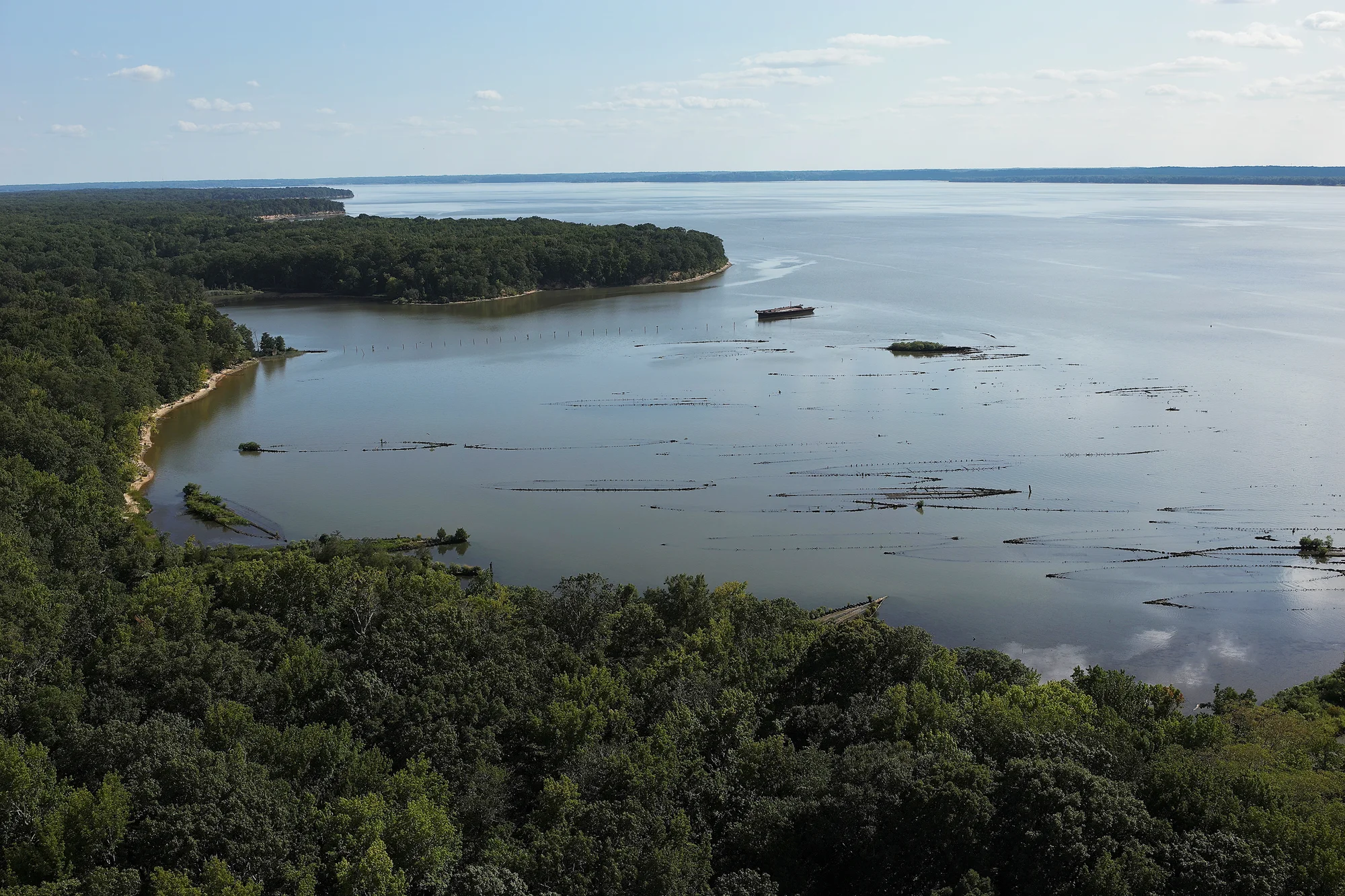 Wrecks near the coast in Mallows Bay are becoming islands, providing novel, human-influenced habitats for a variety of terrestrial and aquatic species. (Duke Marine Robotics and Remote Sensing Lab)