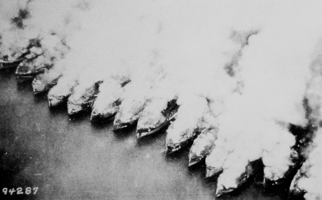 Grounded US Emergency Fleet vessels were burned to the waterline throughout multiple salvage periods at Mallows Bay in order to ease the recovery of their scrap metal.U (nited States National Archives)