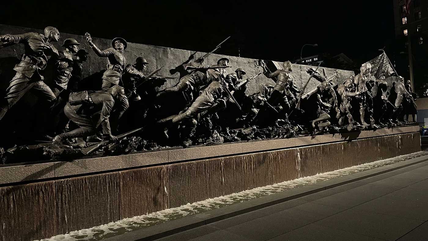 ‘A Soldiers Journey’ was installed in 2024. It is the largest freestanding high relief bronze in the western hemisphere. You can watch the Installation and First Illumination Ceremony in the video below.