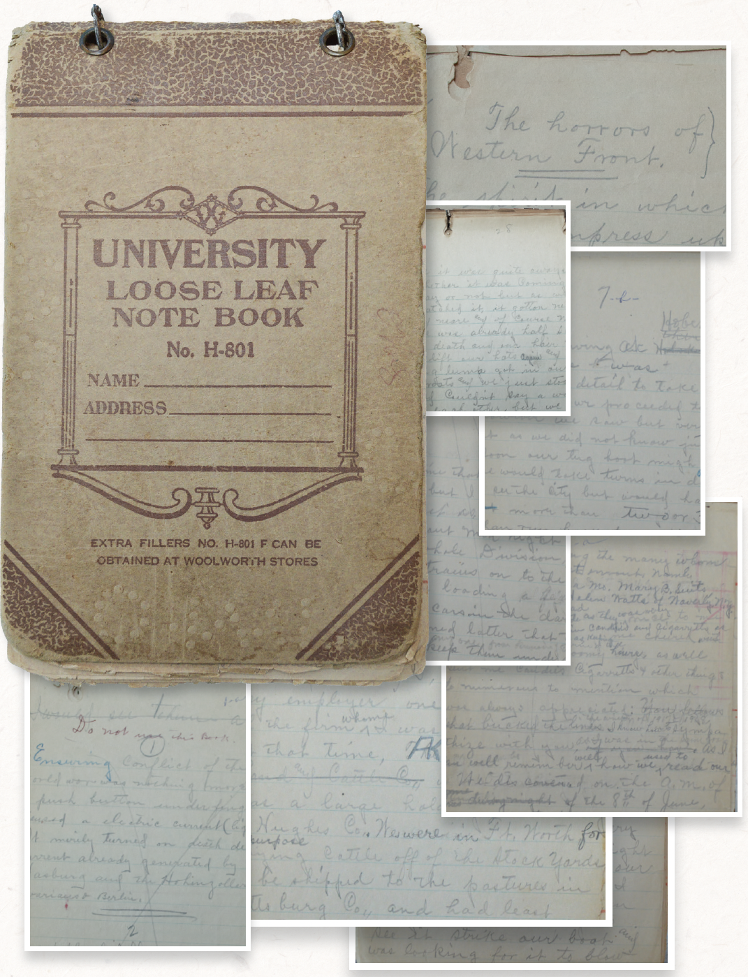 Pages from Otis W. Leader handwritten memoir of his World War I service in the American Expeditionary Forces.