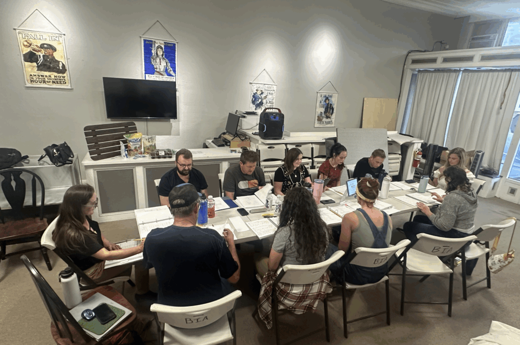 The Twin Falls cast readsthrough the script as rehearsals get underway for the upcoming production of The Hello Girls musical October 30-November 16.