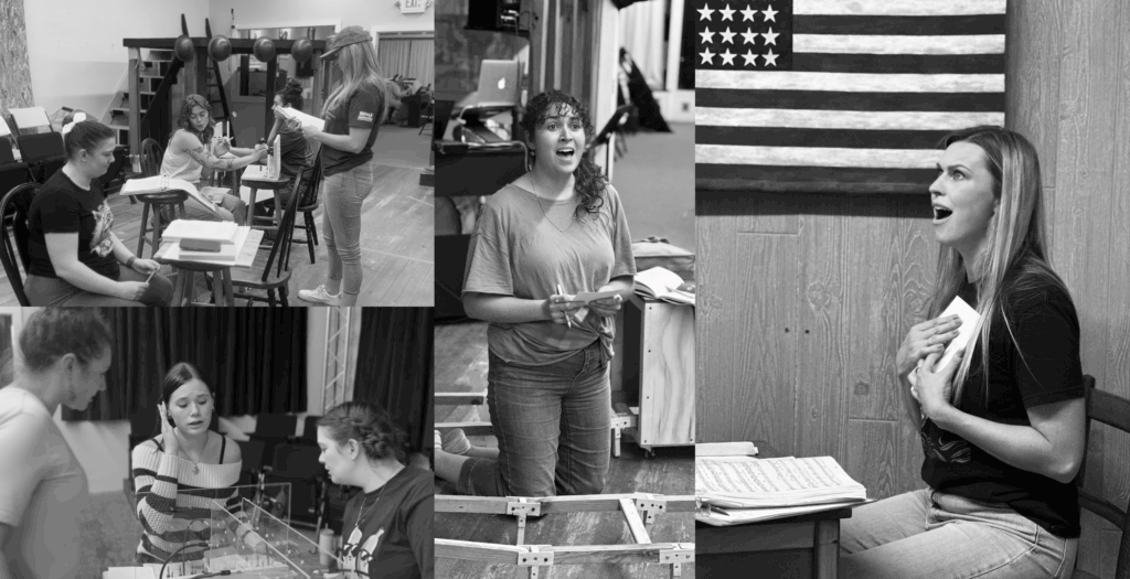 Cast members rehearse their parts for the upcoming production of The Hello Girls Musical at the Twin Falls Theatre Collective in Idaho October 30-November 16.