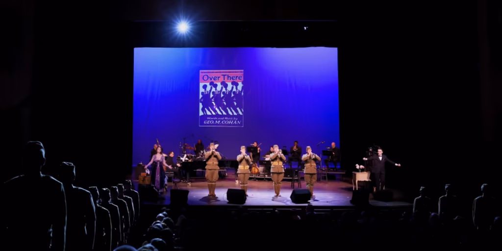 The historical content continued to excite me as we learned about the role of women in the war, and the one thing they asked for was the right to vote, which was finally granted in 1920 in America. Additionally, the fact that Jerome Kern missed a boat ride that could have saved his life is a reminder that we may have lost out on some great compositions down the road. I will let you figure out the name of the ill-fated voyage. Towards the end, the audience got to sing along as a quartet of trumpeters and aisles of doughboys led us all to the WWI – “Over There” and that was Act One!