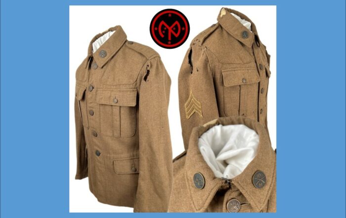 This British Pattern 1902 Other Ranks Service Jacket was field-issued to a Sergeant in Company M of the 106th Infantry Regiment, 27th Division. The buttons have all been replaced with US buttons, there is a [...]