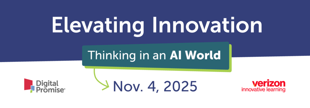 Registration for Verizon event: https://digitalpromise.org/verizon-innovative-learning-schools/elevating-innovation-thinking-in-an-ai-world/