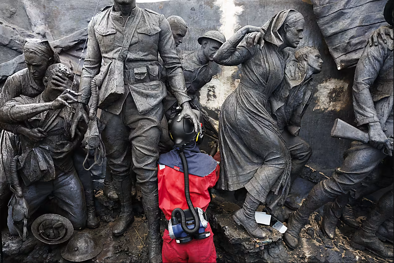 The capital’s monuments to the Vietnam War and World War II were criticized as depressing and ungainly, but a 58-foot-long sculpture by artist Sabin Howard tells a classic story of heroism.