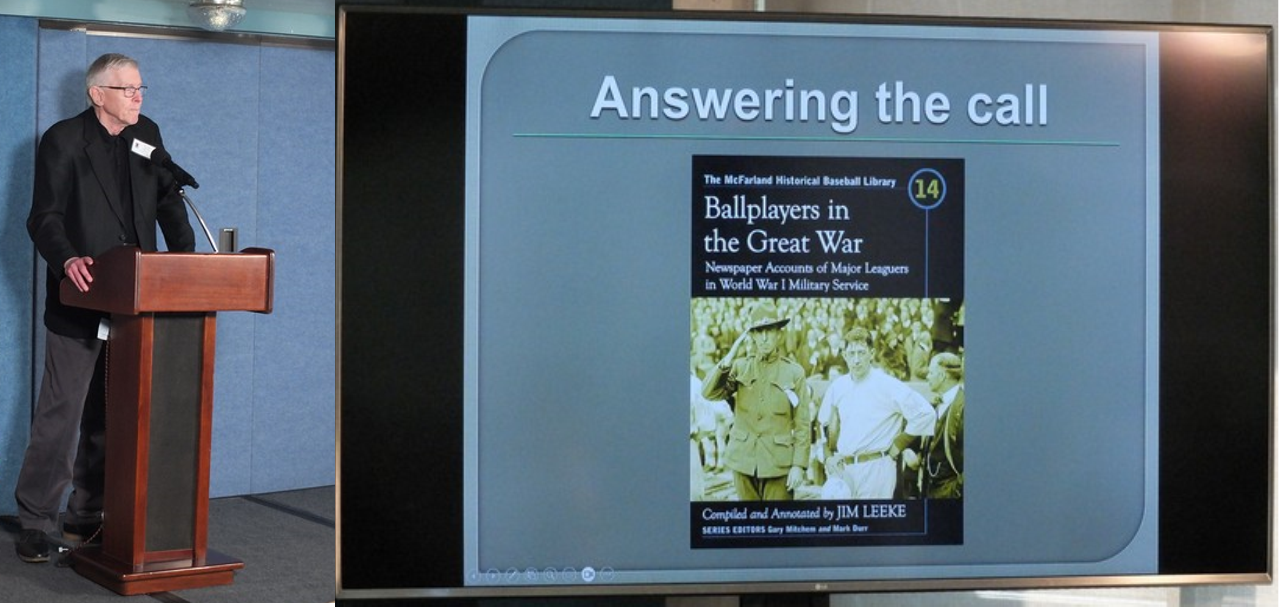 Author Jim Leeke talked about how baseball and ball players contributed to America’s winning performance in World War I. (Photos (c) Bruce Guthrie)