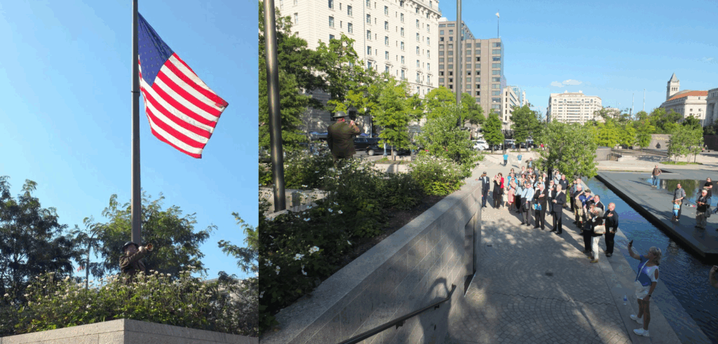 After the conclusion of the Symposium, attendees and participants adjourned to the National World War I Memorial for the playing of Daily Taps at 5:00 p.m., honoring the 4.7 million Americans who served in uniform during World War I, and all of America’s veterans. (Photos (c) Bruce Guthrie)