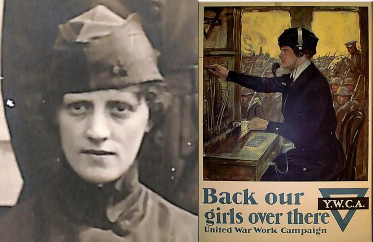Sarah Fairbrother Aldrich (left) was a member of the U.S. WWI U.S. Army Signal Corps Female Telephone Operators, known as The Hello Girls.